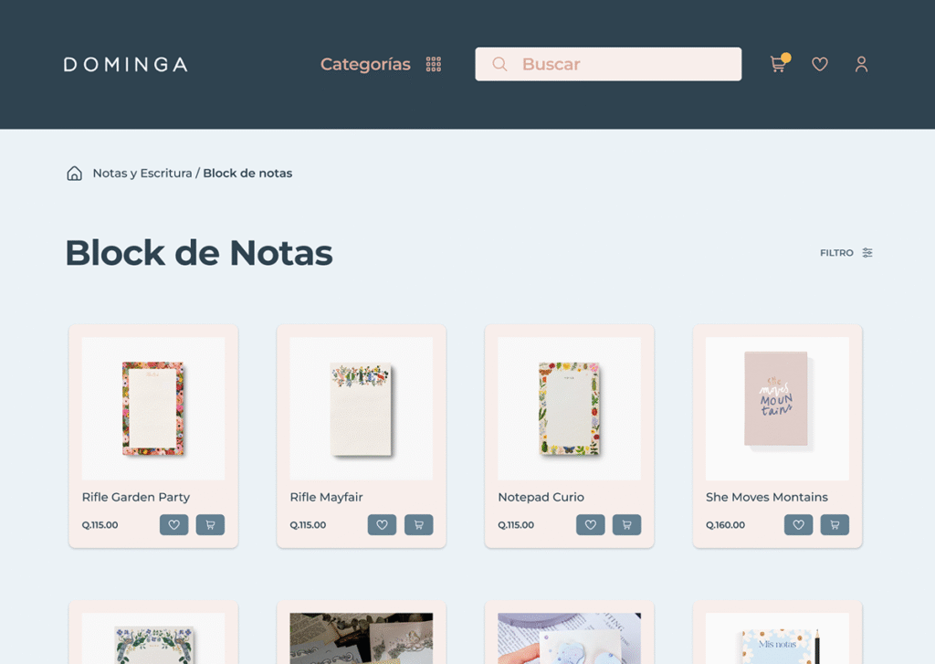 The Dominga redesign focuses on improving the digital presence of this Guatemalan e-commerce brand dedicated to selling materials for art, crafts, and creative development. The objective of the redesign was to strengthen usability, optimize navigation, and enhance the shopping experience through a visual refresh aligned with the brand’s identity.